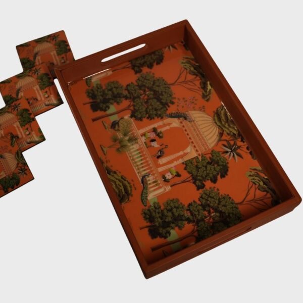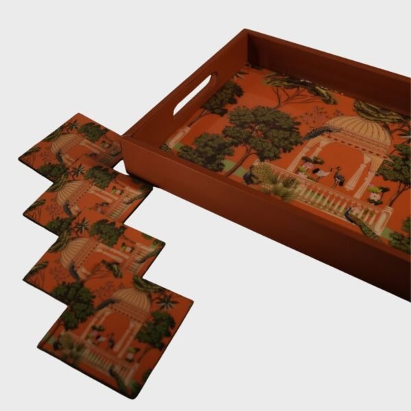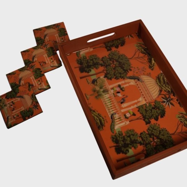 Add elegance and versatility to your home with this handcrafted Resin Tray Set, featuring a vibrant orange tray and four matching coasters. Inspired by traditional Indian architecture and motifs, this set not only serves its purpose—it elevates your space with a burst of art, color, and craftsmanship.